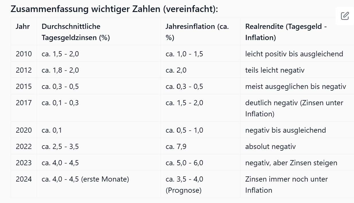 Das nennt man dann den Realzins: Das ist der Zins abzüglich der statistischen Inflation. Und der ist (objektiv betrachtet) die einzig wahre Größe, die zählt.